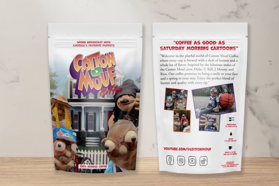 Welcome to the world of Cotton Mouf Coffee, where every cup is brewed with a dash of humor and a whole lot of flavor. Inspired by the hilarious antics of the Cotton Mouf Crew, Duke, G-Ball, J Money and Rico. Our coffee promises to bring a smile to your face and spring into your step. Enjoy the perfect blend of humor and quality with every sip."